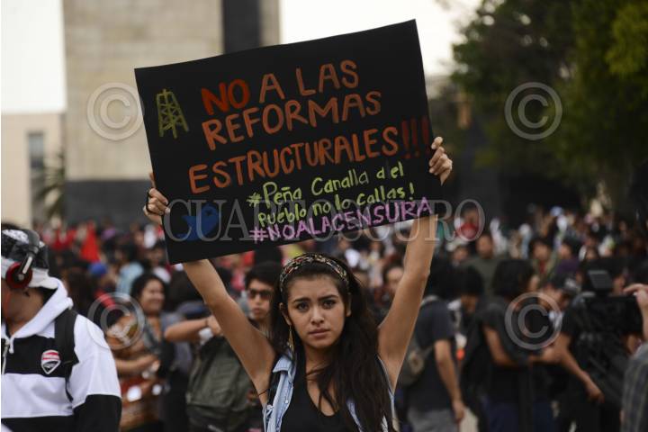 MÉXICO, D.F., 01MAYO2014.- Jóvenes autodenominados anarquistas realizaron una manifestación partiendo del Monumento a la Revolución, con destino al Zócalo Capitalino, para posteriormente partir rumbo a televisa chapultepec. Al llegar a las inmediaciones de televisa, el contingente, reducido en número ya, retornó al metro pues las instalaciones de la televisora estaban ya rodeadas de elementos policiales del GDF. Los anarquistas marcharon para conmemorar a "Los Mártires de Chicago", cinco trabajadores anarquistas sentenciados a muerte en el siglo XIX en la ciudad de Chicago, tras participar en las manifestaciones obreras que reivindicaban la jornada laboral de 8 horas, el primero de Mayo de 1886. FOTO: PEDRO ANZA /CUARTOSCURO.COM