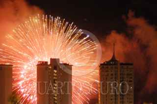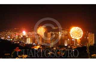 ACAPULCO, GRO 01ENERO2005 En el marco de las celebraciones del año nuevo en Acapulco se llevó a cabo un show de fuegos pirotécnicos sobre la bahía de Santa Lucía. FOTO: Eric Miralrío/CUARTOSCURO.COM