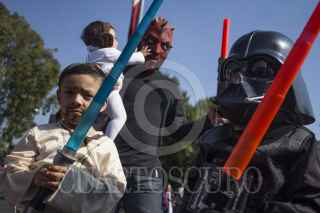 MÉXICO, D.F, 04MAYO2014.- Capitalinos aficionados a las películas de Star Wars, realizaron una convivencia a un costado del Auditorio Nacional donde asistieron la mayoría como los personajes de la Guerra de las Galaxias para compartir anécdotas y ver algunas escenas de las películas. FOTO: ENRIQUE ORDÓÑEZ /CUARTOSCURO.COM