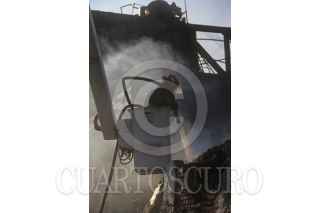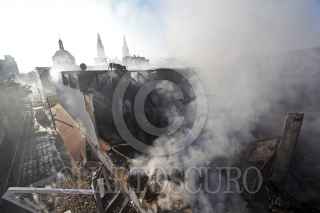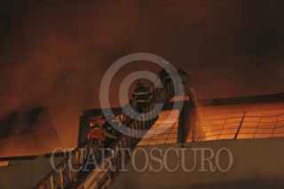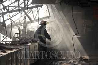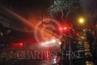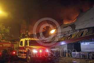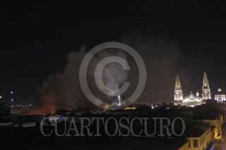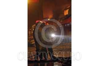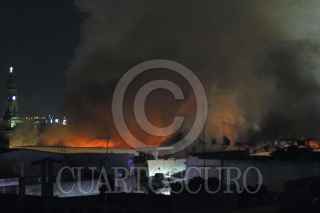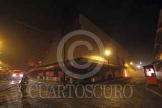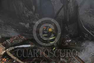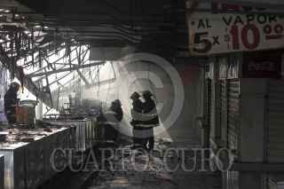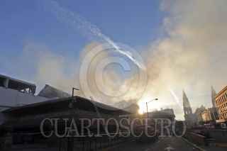 GUADALAJARA, JALISCO, 05MAYO2014.- Personal de Protección Civil de Jalisco y Bomberos de Guadalajara continúan con las labores para sofocar completamente las llamas del Mercado Corona ya que hasta el momento autoridades señalan que se encuentra controlado a un 60 por ciento y que trabajan de manera paulatina ya que existe el riesgo de que dicho inmueble colapse totalmente. Hasta el momento se estima que alrededor de 750 locatarios del Mercado han sido afectados por el siniestro que comenzó la noche del domingo. FOTO: FERNANDO CARRANZA GARCIA /CUARTOSCURO.COM