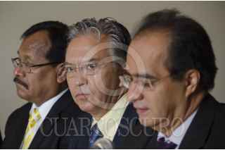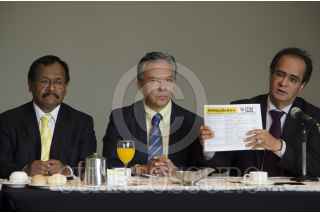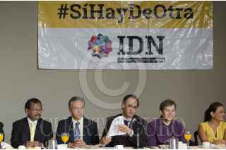MÉXICO, D.F., 05MAYO2014.- Enrique Vargas, secretario del CEN PRD DF. René Bejarano, dirigente de la Izquierda Democrática Nacional (IDN), unas de las llamadas “tribus” del Partido de la Revolución Democrática, presentó el documento “Sí hay de otra: estrategias de insurgencia civil pacífica”, cuyo objetivo, de acuerdo con lo dicho por el líder es provocar que México avance hacia la justicia y libertad a nivel nacional a través de mil 442 acciones, entre éstas marchas, mítines, pláticas, recolección de firmas en contra de las reformas del Ejecutivo, y talleres. Dichas acciones serán puestas en marcha en el marco del 25 Aniversario del PRD y hasta el 15 de septiembre del año en curso. Alejandro Sánchez Camacho, secretario general del PRD y Enrique Vargas, secretario del CEN PRD a nivel Distrito Federal, acudieron a la presentación de la estrategia “Sí hay de otra”. FOTO: MARÍA JOSÉ MARTÍNEZ /CUARTOSCURO.COM