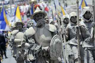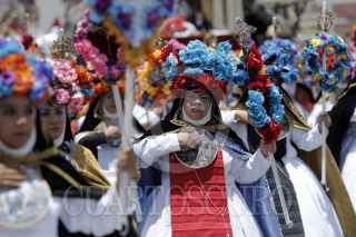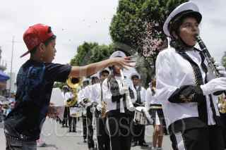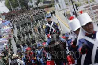 PUEBLA, PUEBLA, 05MAYO2014.- Militares, enfermeras, contingentes y mas de quince carros alegóricos, avanzaron a lo largo de la Calzada Zaragoza y Bulevard 5 de Mayo, como parte del desfile conmemorativo al CLII aniversario de la batalla del 5 de mayo en Puebla. FOTO: HILDA RÍOS/ CUARTOSCURO.COM