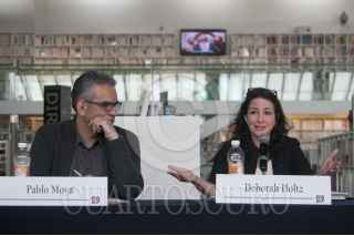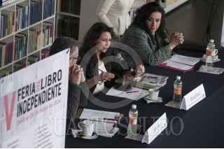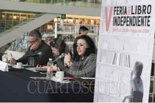 MÉXICO, D.F., 06MAYO2014.- Pablo Moya, de Ediciones el El Milagro, y Deborah Holtz, de la Alianza de Editoriales Mexicanas Independientes, ofrecieron una conferencia de prensa en el Centro Cultural Bella Época del Fondo de Cultura Económica para presentar la quinta Feria del Libro Independiente, que se realizará del 8 al 28 de mayo en dicho recinto. El evento tendrá la participación de 80 editoriales, 3 mil 500 títulos y cerca de 20 mil ejemplares, además de un programa cultural con más de 70 actividades. FOTO: DIEGO SIMÓN SÁNCHEZ /CUARTOSCURO.COM