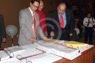 TOLUCA, EDO DE MÉXICO 02ENERO2006.- La coalición Alianza por México ( PRI-PVEM )presento hoy la inscripción a diputados locales por el principio de mayoria relativa en las intalaciones del IEEM, Cesar Fajardo de la Mora y Miguel Angel Olguin representante del PRI y de la coalición "Alianza por México" respectivamente. FOTO: Noé Marure/CUARTOSCURO.COM