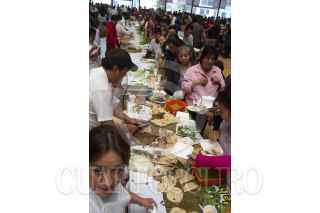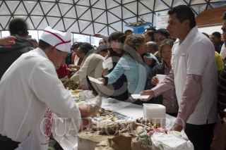 MÉXICO, D.F., 07MAYO2014.- Centenares de personas acudieron a la degustación del llamado Bicitaco, en donde productores de barbacoa realizaron un taco en forma de bicicleta, en el Domo del Plan Sexenal. FOTO: GUILLERMO PEREA /CUARTOSCURO.COM