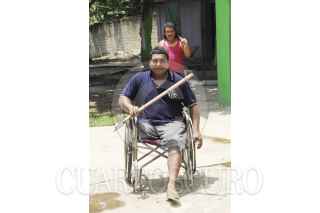 TAPACHULA,CHIAPAS, 08MAYO2014.- Byron perdió una pierna al caer del tren cuando intentaba cruzar México para llegar a Estados Unidos, arriba de los vagones del ferrocarril. No hay cifras oficiales sobre el número de migrantes que son mutilados en accidentes en su ruta, pero para muchos de ellos y ellas, luego del accidente, su único refugio es el albergue Jesús el Buen Pastor, ubicado en Tapachula, en la frontera con Guatemala. Este es el único lugar en México donde se les permite permanecer en tanto se recuperan físicamente, o consiguen una prótesis que les permita moverse para, en la mayoría de los casos, regresar a sus países de origen. FOTO: ELIZABETH RUIZ /CUARTOSCURO.COM
