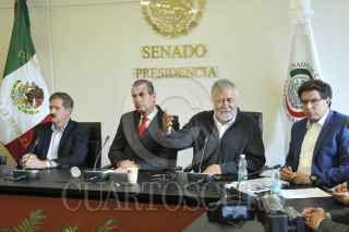 MÉXICO, D.F., 09MAYO2014.- Los senadores Juan Carlos Romero Hicks, Miguel Ángel Chico Herrera, Alejandro Encinas y Armando Ríos Piters, ofrecieron una conferencia para hablar sobre los avances de la reforma política. FOTO: CUARTOSCURO.COM
