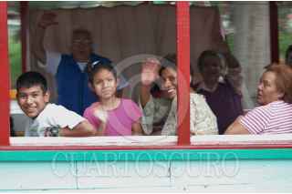 MÉXICO, D.F., 10MAYO2014.- El embarcadero Nuevo Nativitas fue anfitrión de decenas de familias que acudieron a festejar a sus madres, abuelas y tías en este 10 de mayo, sin embargo una lluvia repentina sorprendió a los visitantes. FOTO: MARÍA JOSÉ MARTÍNEZ /CUARTOSCURO.COM