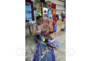 ZINACANTAN, CHIAPAS, 11MAYO2014.- Tejedoras de Zinacantán, una de las técnicas textilies prehispánicas que ha sobrevivido hasta nuestros dias; en este pueblo se ha trabajado en la conservación de las formas de vestimenta tradicional, la diversidad de colores y diseños; la mujer ha sido portadra de la gran gama de textiles, este arte ha sido trasmitido de generación en generación y desde muy pequeñas se inician; las principales actividades de los Zinacantecos son la exportación de flores y la creación de textiles, este pueblo se encuentra en la zona conocida como los altos de Chiapas y su poblacion es de origen tsotsil. FOTO: ELIZABETH RUIZ /CUARTOSCURO.COM