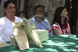 OAXACA, OAXACA, 12MAYO2014.- El pintor oaxaqueño y fundador del Patronato para la Defensa y Conservación del Patrimonio Cultural y Natural de Oaxaca, A.C. (PRO-OAX) dio a conocer la "Declaración de Vida" carta en contra del uso de maíz transgénico en el territorio nacional, esto ya que esta demostrado que los granos genéticamente alterados dañan a las personas y animales. FOTO: ARTURO PÉREZ ALFONSO /CUARTOSCURO.COM