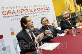 MÉXICO, D.F., 13MAYO2014.- Salomón Chertorivsky, secretario de Desarrollo Económico; Cuauhtemoc Cardenas, coordinador de Asuntos Internacionales y Miguel Torruco Marqués, secretario de Turismo del Gobierno del Distrito Federal durante una conferencia de prensa para informar de la gira de trabajo a celebrarse en los próximos días por la ciudad de Chicago, en el marco del Memorándum de Entendimiento para el Establecimiento de las Ciudades Globales México y Chicago. FOTO: RODOLFO ANGULO /CUARTOSCURO.COM
