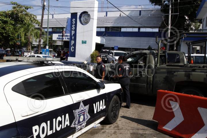 ACAPULCO, GUERRERO, 13MAYO2014.- Mas de Mil 500 elementos policiacos pertenecientes a la Secretaría de Seguridad Pública y Protección Civil (SSPPC) municipal, comenzaron el proceso de evaluación y certificación con miras a su integración al mando único de policía, mediante la aplicación de un examen toxicológico efectuado de manera sorpresiva. A las 8 horas en las instalaciones de la SSPPC municipal, arribaron elementos de la Fuerza Estatal, policía federal y Ejército Mexicano, para realizar labores de vigilancia y control en el exterior e interior de la corporación. FOTO: BERNANDINO HERNÁNDEZ /CUARTOSCURO.COM
