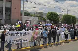 CHILPANCINGO, GUERRERO, 13MAYO2014.- Un grupo de ciudadanos católicos acudieron al Congreso de Guerrero para exigirle a los diputados se abstengan de la aprobación de la iniciativa que despenaliza el aborto, propuesta por el gobernador Ángel Aguirre Rivero. Con pancartas que incluían mensajes como “Sí a la vida! No al aborto” protestaron a las afueras del recinto. FOTO: JOSÉ I. HERNÁNDEZ /CUARTOSCURO.COM