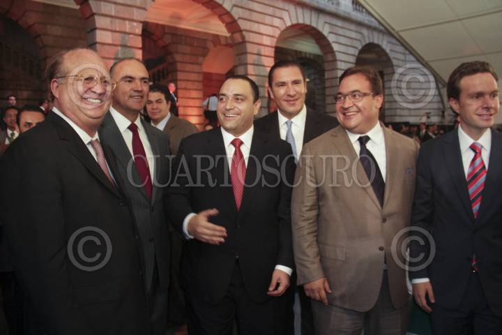 MÉXICO, D.F., 13MAYO2014.- Los gobernadores Graco Ramírez, Morelos, José Calzada Rovirosa, Querétaro, Roberto Borge Angulo, Quintana Roo, Rafael Moreno Valle, Puebla, Javier Duarte de Ochoa, Veracruz y Manuel Velasco Coello, Chiapas, al finalizar la firma de convenios de automaticidad entre los gobernadores de los estados y el Sindicato Nacional de Trabajadores de la Educación. FOTO: MOISÉS PABLO /CUARTOSCURO.COM