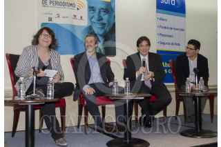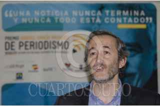 MÉXICO, D.F., 14MAYO2014.- La Fundación Gabriel García Márquez para el nuevo periodismo Iberoamericano (FNPI) presentó la convocatoria de la segunda edición del Premio Gabriel García Márquez de Periodismo. El encuentro, en donde se abordó el tema de la ética periodística, fue presidido por Jaime Abello Banfi, director general de la FNPI, Pablo Sprenger, CEO del grupo asegurador SURA; Gumersindo Lafuente, periodista y maestro de la FNPI, quien condujo la charla “La ética como modelo de negocio”; la periodista y directora de W Radio, Gabriela Warketin, Martín Caparrós, miembro del consejo rector del Premio y Alejandro Almazán, periodista y ganador del premio en la categoría Texto en 2013, año en el cual se recibieron 1339 postulaciones. Abello Banfi mencionó que en el caso de los periodistas mexicanos “es necesario incrementar el número de trabajos inscritos; el año pasado se recibieron 169 trabajos de México”. El premio consta de las siguientes categorías, Texto, Imagen, Cobertura, Innovación y Excelencia. FOTO: MARÍA JOSÉ MARTÍNEZ /CUARTOSCURO.COM