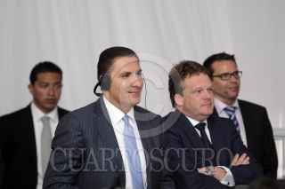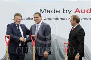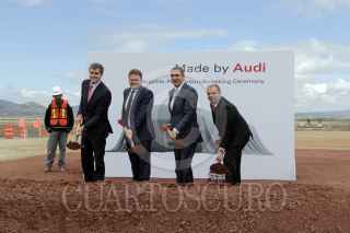 SAN JOSÉ CHIAPA, PUEBLA, 14MAYO2014.- El gobernador Rafael Moreno Valle, Bernd Martens, Miembro del Consejo de Dirección de AUDI México y Klaus-Peter Körner, director de producción de la planta de Audi internacional, iniciaron los trabajos de construcción del Parque Industrial que albergará a las empresas proveedoras de la planta de autos AUDI ubicada en San José Chiapa, Puebla. FOTO: HILDA RÍOS /CUARTOSCURO.COM
