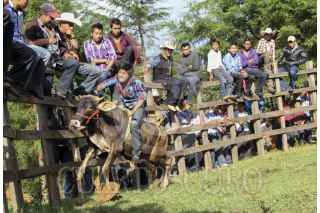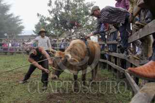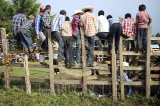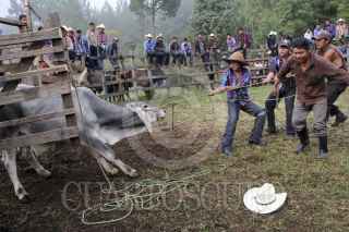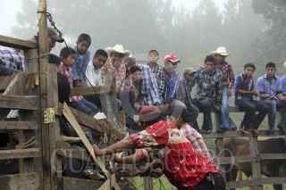 SAN CRISTÓBAL DE LAS CASAS, 15MAYO2014.- Habitantes de San Isidro el Ocotal, una comunidad compuesta únicamente por 50 familias que viven de la agricultura, festejan al santo del mismo nombre con una misa, comida y la tradicional "montada del toro" en el que se reúne a todo el pueblo para disfrutar del espectáculo. FOTO: ELIZABETH RUIZ /CUARTOSCURO.COM