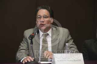 MÉXICO, D.F., 15MAYO2014.- La arqueólogo Alberto Nava Blank durante el anunció sobre el descubrimiento del esqueleto humano en el sitio arqueológico Hoyo Negro, ubicado dentro de una cueva inundada de Quintana Roo, el cual ha sido fechado científicamente con una antigüedad de entre 13,000 y 12,000 años en laboratorios de Estados Unidos y Canadá. El esqueleto que fue calificado como el eslabón entre los primeros hombres de América y su linaje asiático, peteneció a una joven de entre 15 y 16 años quien murió dentro una cueva que muy probablemente fue inundada por la última glaciación y quien los expertos la han bautizado como "Naia". Además del esqueleto humano se han descubierto restos de 26 mamíferos correspondientes a once especies del Pleistoceno Tardío que incluyen: gonfoterio, tigre dientes de sable, perezoso de tierra tipo Shasta, Tair Gigante, cerdo de monte, oso, puma, lince, coyote, coatí y murciélago frutero. FOTO: MOISÉS PABLO /CUARTOSCURO.COM