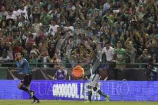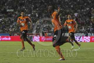 LEÓN, GUANAJUATO, 15MAYO2014.- Esta noche en el Estadio Nou Camp de esta ciudad y en partido correspondiente a la final de ida del Torneo Clausura 2014 de la Liga MX, se enfrentan los equipos de León frente a Pachuca. En la imagen el jugador de Pachuca, Enner Valencia, celebra su segunda anotación del partido. FOTO: FERNANDO CARRANZA GARCÍA /CUARTOSCURO.COM