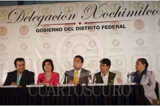 MÉXICO, D.F., 16MAYO2014.- Un aproximado de 130 toneladas de basura y lirio acuático es la meta a superar del Programa de Limpieza de Canales y Mantenimiento con Reforestación que presentó el delegado de Xochimilco, Miguel Ángel Cámara, quien realizó la entrega simbólica de kits de limpieza a los locales. FOTO: MARÍA JOSÉ MARTÍNEZ /CUARTOSCURO.COM
