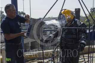 MÉXICO, D.F., 17MAYO2014.- Tras 31 años de servició en el Sistema de Aguas de la Ciudad de México como Buzo del Drenaje Profundo y 53 años de edad, Julio Cu Cámara es el único buzo que queda desde la creación de este equipo en 1983, luego de la deserción de sus demás compañeros por el bajo sueldo y las pocas prestaciones que tenían por parte del gobierno capitalino. Julio al pensar en su retiro, a entrenado a dos jóvenes quienes serán los encargados de atender las emergencias que el drenaje les requiera. Ángel Juárez de 23 años es uno de los dos futuros buzos de la Ciudad el cual se incorporo al equipo ante el reto que este trabajo implica. FOTO: ENRIQUE ORDÓÑEZ /CUARTOSCURO.COM