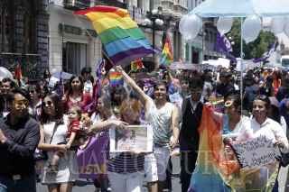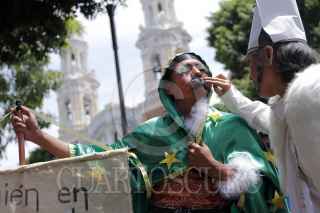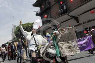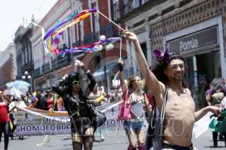 PUEBLA, PUEBLA, 17MAYO2014.- Decenas de integrantes de la comunidad LGBTTTI, realizaron la denominada marcha del taconazo por las calles del centro de la ciudad en el marco del día mundial contra la homofobia, en la que exigen respeto a la diversidad y alto a la violencia sexual. FOTO: HILDA RÍOS /CUARTOSCURO.COM