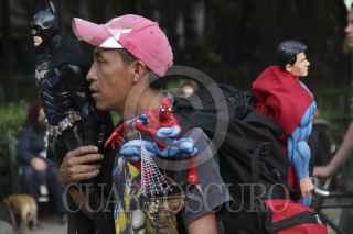 MÉXICO, D.F., 17MAYO2014.- Un hombre vende muñecos de superhéroes para ganarse la vida ante la falta de oportunidades laborales. FOTO: MOISÉS PABLO /CUARTOSCURO.COM