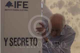 MÉXICO, D.F., 18MAYO2014.- Luis H Álvarez, durante su votación en el Parque de los Venados en las elecciones del PAN a la dirigencia Nacional. FOTO: ENRIQUE ORDÓÑEZ /CUARTOSCURO.COM