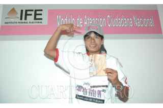 MEXICO, DF, 04ENERO2005.- La futbolista mexicana Maribel Domínguez " Marigol " realizo un visita la modulo del IFE instalada en el aeropuerto internacional de la ciudad de México donde esta previendo el voto en el extranjero. FOTO: Kiko Guanabacoa/CUARTOSCURO.COM