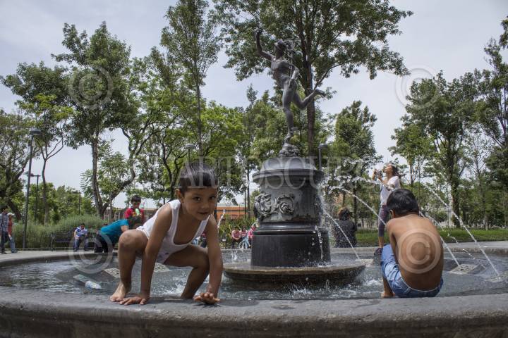 MEXICO, D.F, 18MAYO2014.- Niños juegan en una fuente de la Alameda Central en la Ciudad de México. FOTO: DAVID POLO /CUARTOSCURO.COM