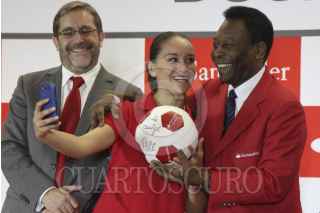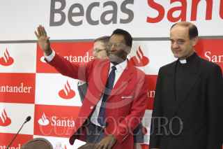 HUIXQUILUCAN, ESTADO DE MÉXICO, 19MAYO2014.- El futbolista brasileño Edson Arantes do Nascimento "Pele", ofreció una conferencia magistral de liderazgo y entrego becas a estudiantes destacados de la Universidad Anahuac. FOTO: SAÚL LÓPEZ /CUARTOSCURO.COM