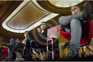 MÉXICO, D.F., 19MAYO2014.- El grupo regiomontano de rock Jumbo presentó su nuevo disco "Alfa beta Grey" y anunció su próximo concierto en el Teatro Metropolitan el viernes 27 de junio. Clemente Castillo, Charly Castro, Flip Tamez y Beto Ramos se mostraron satisfechos de regresar a los escenarios. FOTO: MARÍA JOSÉ MARTÍNEZ /CUARTOSCURO.COM