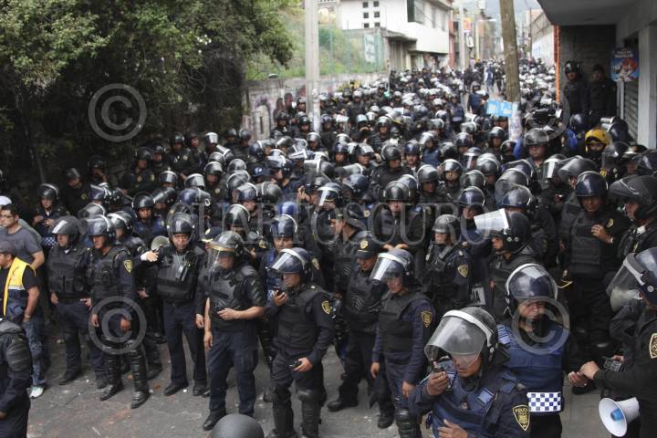 MÉXICO, D.F., 21MAYO2014.- Decena de heridos dejo como saldo el enfrentamiento entre habitantes del Pueblo de San Bartolo Ameyalco en la delegación Alvaro Obregón y policías antimotines de la SSP-DF después de intentar rescatar a policías retenidos en el centro de salud, todo esto debido a que los pobladores no permitieron que trabajadores el Sistema de Aguas de la Ciudad de México realizaran obras hidráulicas para la distribución de agua en un pozo ubicado en el centro del poblado. FOTO: SAÚL LÓPEZ /CUARTOSCURO.COM