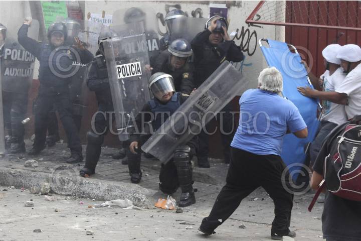 MÉXICO, D.F., 21MAYO2014.- Decena de heridos dejo como saldo el enfrentamiento entre habitantes del Pueblo de San Bartolo Ameyalco en la delegación Alvaro Obregón y policías antimotines de la SSP-DF después de intentar rescatar a policías retenidos en el centro de salud, todo esto debido a que los pobladores no permitieron que trabajadores el Sistema de Aguas de la Ciudad de México realizaran obras hidráulicas para la distribución de agua en un pozo ubicado en el centro del poblado. FOTO: SAÚL LÓPEZ /CUARTOSCURO.COM