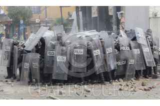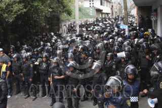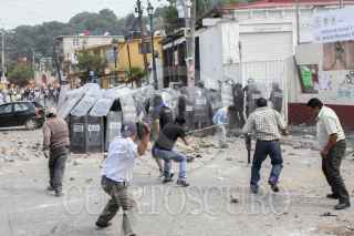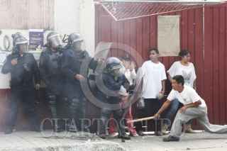 MÉXICO, D.F., 21MAYO2014.- Decena de heridos dejo como saldo el enfrentamiento entre habitantes del Pueblo de San Bartolo Ameyalco en la delegación Alvaro Obregón y policías antimotines de la SSP-DF después de intentar rescatar a policías retenidos en el centro de salud, todo esto debido a que los pobladores no permitieron que trabajadores el Sistema de Aguas de la Ciudad de México realizaran obras hidráulicas para la distribución de agua en un pozo ubicado en el centro del poblado. FOTO: SAÚL LÓPEZ /CUARTOSCURO.COM