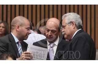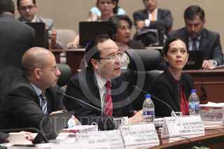 MÉXICO, D.F., 21MAYO2014.- Jose Roberto Saldaña, Enrique Andrade González y Javier Santiago Castillo, Consejeros Electorales del INE, durante la sesión. FOTO: CUARTOSCURO.COM