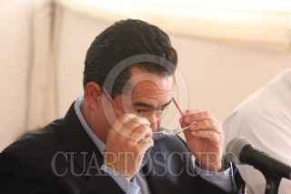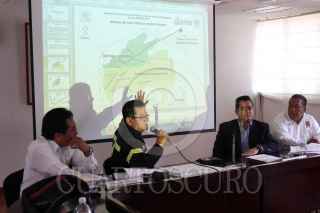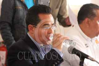 MÉXICO, D.F., 22MAYO2014.- Leonel Luna Estrada, delegado en Álvaro Obregón, acompañado de Miguel Recaño, director de fortalecimiento institucional del sistema de aguas de la Ciudad de México en conferencia de prensa dieron detalles del abastecimiento de agua del sistema de manantiales en la zona de San Bartolo Ameyalco así como cifras del operativo de seguridad tras el enfrentamiento entre granaderos y pobladores de Ameyalco. FOTO: SAÚL LOPEZ /CUARTOSCURO.COM