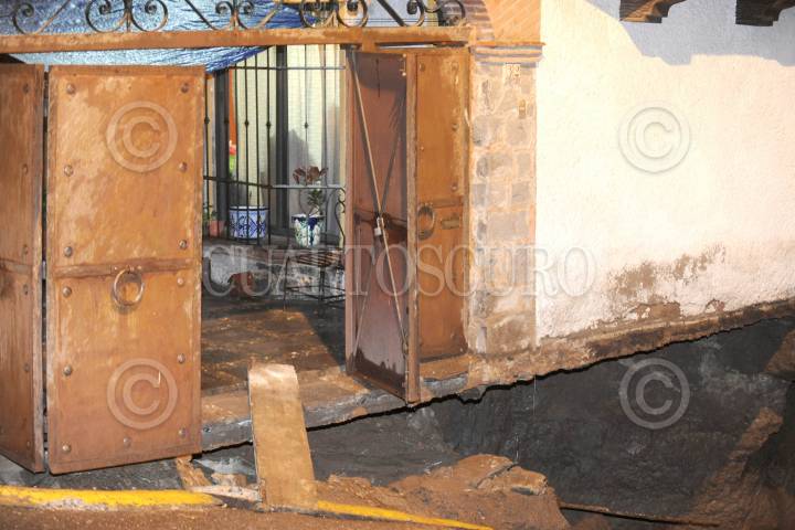 MÉXICO, D.F., 22MAYO2014.- Jesus Valencia delegado en Iztalapa y Miguel Ricaño Escobar, director del Sistema de Aguas de la Ciudad de México, mencionaron que al menos una semana de trabajos tardaran en reparar el que un tubo de 20 pulgadas de diámetro de la red primaria de agua potable que provocó un socavón de 25 metros de largo por 8 de ancho y 12 metros de profundidad, ubicado en la calle Águila Blanquinegra esquina con Jacobo Watts, colonia Pueblo de San Simón Culhuacán. FOTO: SAÚL LÓPEZ /CUARTOSCURO.COM