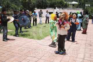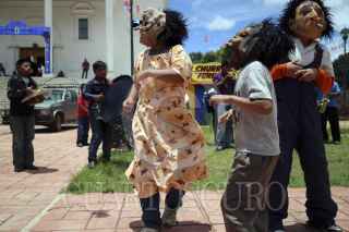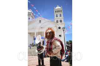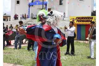SAN CRISTÓBAL DE LAS CASAS, 23MAYO2014.- En San Cristóbal cada barrio tiene su fiesta, se festeja en honor al santo patrón del barrio y los festejos suelen durar de dos a tres días. Desfiles, disfraces y carros alegóricos, además del paseo tradicional de la figura del santo en la calle, son algunos rasgos del color de aquellas fiestas. Los barrios de Cuxtitalli “Dulce Nombre de Jesús”, La Garita “Santa Cruz”, María Auxiliadora, San Antonio, San Cristobalito son sólo algunos de los que festejan con el repique de las campanas, cuetes y una misa. En la imagen, la fiesta del barrio de María Auxiliadora. FOTO: ELIZABETH RUIZ /CUARTOSCURO.COM