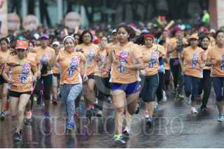 MÉXICO, D.F., 25MAYO2014.- Capitalinas participaron en una carrera de 10 kilómetros que tuvo lugar sobre la avenida Reforma. En el evento, que fue organizado por una empresa dedicada a la venta de agua embotellada, hombres disfrazados de mujeres se pudieron apreciar. FOTO: IVAN STEPHENS /CUARTOSCURO.COM