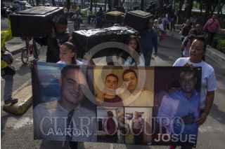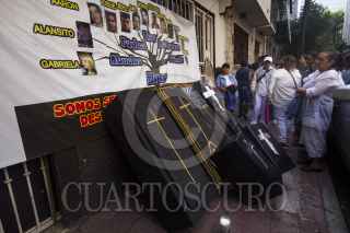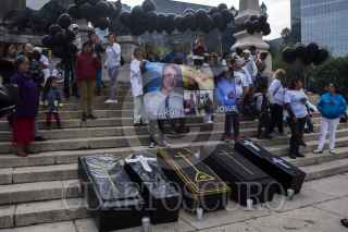 MÉXICO, D.F., 26MAYO2014.- Familiares y amigos de los jóvenes secuestrados y muertos presuntamente por parte de un ajuste de cuentas entre narcomenudistas de Tepito, realizaron una marcha del Ángel de la Independencia al Bar en la zona rosa donde montaron unos ataúdes de cartón y colocaron veladoras y aventaron globos en el 1 aniversario del secuestro. FOTO: ENRIQUE ORDÓÑEZ /CUARTOSCURO.COM