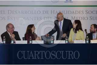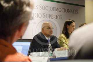 MÉXICO, D.F, 27MAYO2014.- Rodolfo Tuirán, subsecretario de Educación Media Superior de la Secretaría de Educación Pública, inauguró, en presencia de autoridades del Banco Mundial expertos en el tema educativo, el simposio Impulsando el Desarrollo de Habilidades Socioemocionales en los Estudiantes de Nivel Media Superior, en donde mencionó que la secretaría pondrá en marcha la capacitación de más de mil docentes en materia de habilidades socioemocionales para impedir que el tema de violencia y acoso escolar se incremente. Mencionó que el 72 por ciento de los estudiantes del nivel medio superior tiene escasa tolerancia dentro del entorno escolar para asumir situaciones diarias, mientras que el 33 por ciento no se definen como una persona socialmente empática. FOTO: MARÍA JOSÉ MARTÍNEZ /CUARTOSCURO.COM