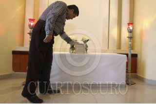 MONTERREY, NUEVO LEÓN, 27MAYO2014.- Las cenizas de Manuel Uribe, el hombre que fue considerado con más sobrepeso en el mundo en 2007, son velados en una capilla del centro de la ciudad en donde familiares y amigos acudieron a dar el pésame. FOTO: GABRIELA PÉREZ MONTIEL / CUARTOSCURO.COM