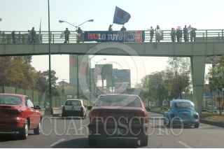 MÉXICO, D.F. 11ENERO2006.- Simpatizantes del Partido Acción Nacional (PAN) del Distrito Federal ondearon banderas y colocaron propaganda del partido en los puentes de periférico durante el registro de Felipe Calderón Hinojosa como candidato a la presidencia de la República. FOTO: Iván Stephens/CUARTOSCURO.COM