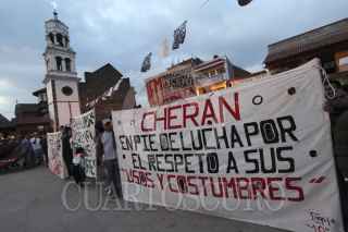 CHERÁN, MICHOACÁN. 27MAYO2014.- En una decisión inédita, el pleno de la Suprema Corte de Justicia de la Nación (SCJN) le dio la razón al municipio indígena de Cherán, Michoacán e invalidó la reforma constitucional del estado de Michoacán, promulgada el 12 de marzo de 2012, con la que esa entidad pretendía “adaptar” su legislación al artículo segundo de la Constitución general de la República. Los representantes del ayuntamiento, que fueron elegidos mediante el método de usos y costumbres y que por resolución del Tribunal Electoral del Poder Judicial de la Federación (TEPJF) tiene las mismas prerrogativas y derechos que el resto de los municipios del país para presentar controversias ante la SCJN, se quejaron de que la Cámara de Diputados incumplió con lo establecido en el Convenio 169 de la Organización del Trabajo. Dicho convenio, ratificado por México, establece la obligación de los gobiernos de “consultar a los pueblos indígenas en el momento en que se emita o se prevean medidas legislativas o administrativas, susceptibles de afectarles directamente. FOTO ARCHIVO: JUAN JOSÉ ESTRADA SERAFÍN /CUARTOSCURO.COM
