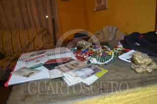 ECATEPEC, ESTADO DE MÉXICO; 28MAYO2014.- Trece personas, presuntos secuestradores , fueron asegurados por la policía Municipal en coordinación con Ejercito Mexicano, luego de que estos, secuestraran a una menor de 12 años a la que sustrajeron de su domicilio ubicado en la colonia Ejidos de Ecatepec. Así mismo, fue asegurado un domicilio, tres vehículos en los que pretendían huir y que llevaban de “muro”. Los presuntos delincuentes, fueron puestos a disposición en el Ministerio Publico de esta demarcación. En dicho domicilio asegurado, fueron halladas varias autopartes y velas expuestas a un cráneo y santos diversos propios de la santería. FOTO: LUIS CARBAYO /CUARTOSCURO.COM