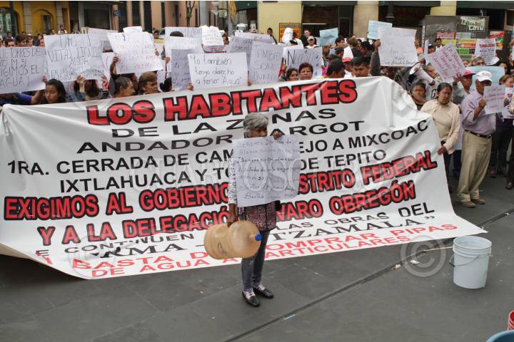 MÉXICO, D.F., 28MAYO2014.- Vecinos de las colonias altas de la delegación Álvaro Obregón se manifestaron afuera de la Asamblea Legislatuva del DF para exigir al delegado Leonel Luna que no paren las obras hidráulicas que hace algunos días desataron una trifulca entre pobladores de San Bartolo Ameyalco y la policía. FOTO: MOISÉS PABLO /CUARTOSCURO.COM