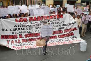 MÉXICO, D.F., 28MAYO2014.- Vecinos de las colonias altas de la delegación Álvaro Obregón se manifestaron afuera de la Asamblea Legislatuva del DF para exigir al delegado Leonel Luna que no paren las obras hidráulicas que hace algunos días desataron una trifulca entre pobladores de San Bartolo Ameyalco y la policía. FOTO: MOISÉS PABLO /CUARTOSCURO.COM