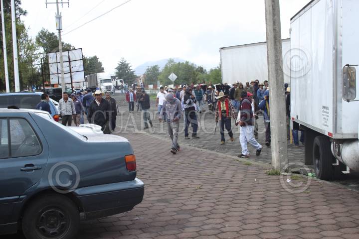 PARACHO, MICHOACÁN, 28MAYO2014.- Habitantes de la comunidad indígena de Quinceo y de la cabecera municipal mantienen un bloqueo en la carretera federal Paracho-Uruapan, exigen la liberación de personas que fueron detenidas durante madrugada durante un operativo de la Policía Ministerial, Federales y autodefensas quienes arrestaron a un supuesto líder de la región del Cartel de los Caballeros Templarios, quien fue puesto a disposición de las autoridades correspondientes. Los manifestantes amenazaron con realizar mas acciones en la región si no son liberados las personas retenidas. FOTO: JUAN JOSÉ ESTRADA SERAFIN /CUARTOSCURO.COM