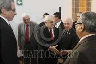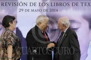MÉXICO, D.F., 29MAYO2014.- Emilio Chuayffet Chemor, secretario de Educación, y Jaime Labastida, director de la Academia Mexicana de la Lengua, durante el cierre de revisión de los Libros de Textos Gratuitos. FOTO: ISAAC ESQUIVEL /CUARTOSCURO.COM